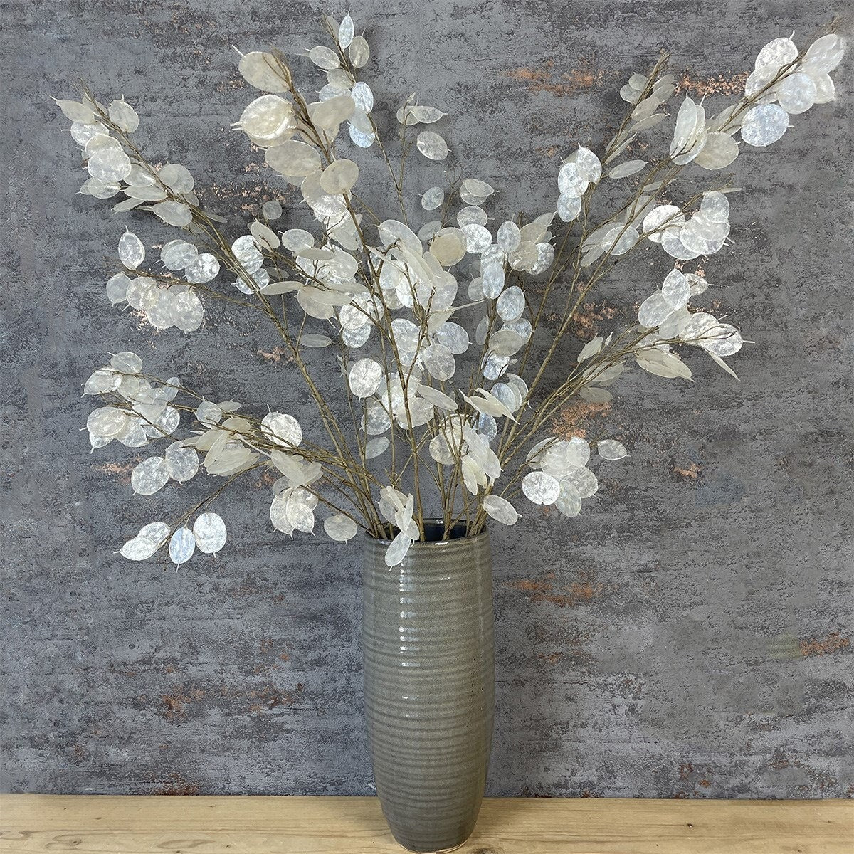 Our tall Luxury Honesty stem is subtly transparent, and with its pearlescent seed heads, will gently glisten in the light, just like in nature. In fact it's almost more beautiful than the real thing. Display singly or mix with other winter branches for the perfect winter vase arrangement.