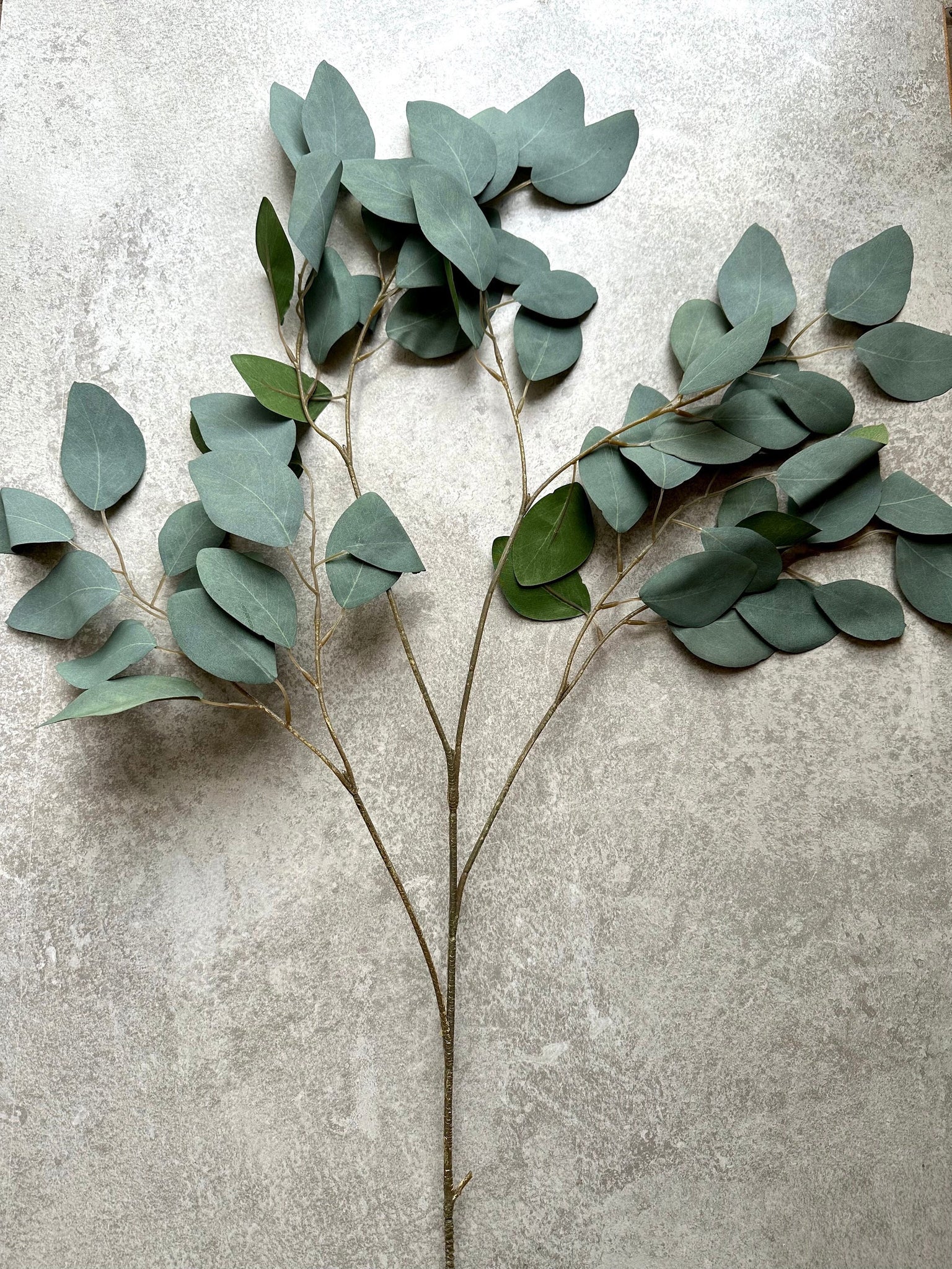 Our tall artificial eucalyptus stem is the perfect centrepiece for your faux flower arrangements The abundant soft green leaves are incredibly realistic and will be a delight in your home.