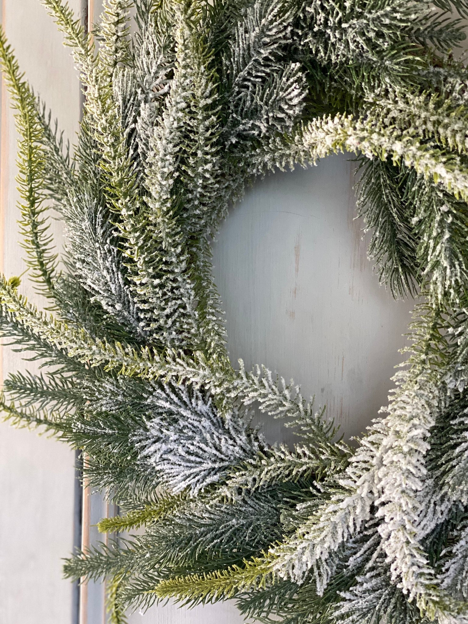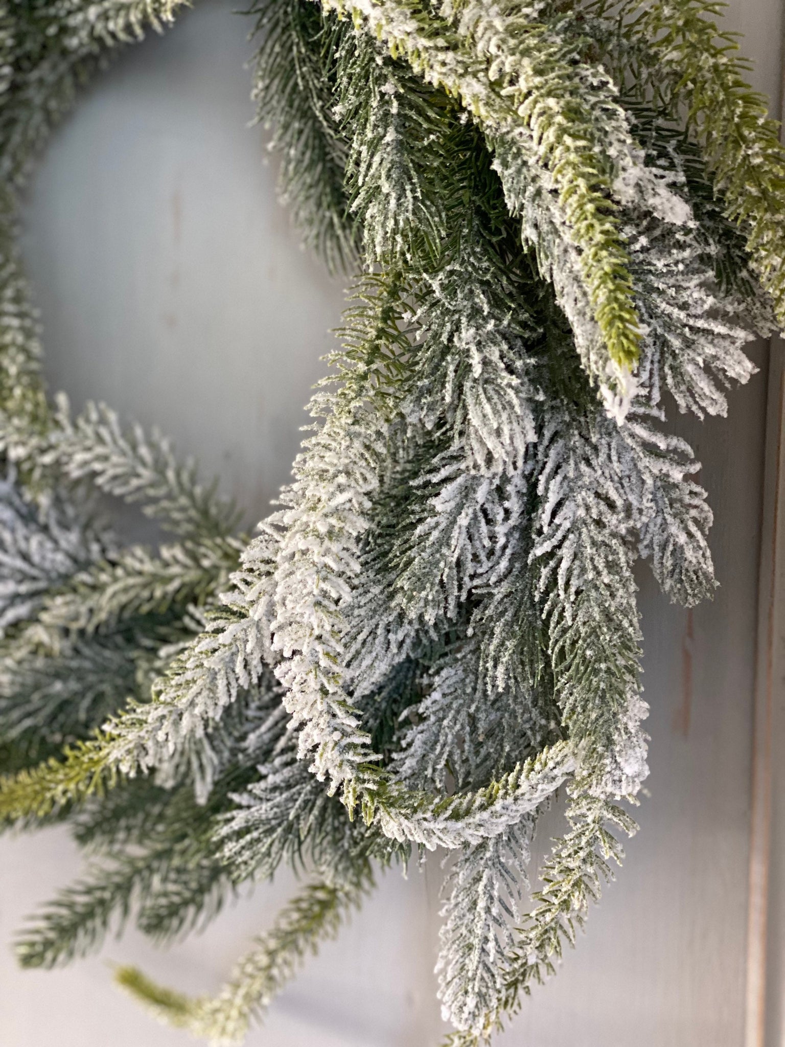 - Material: Faux pine branches, frosted accents, snow-dusted tips