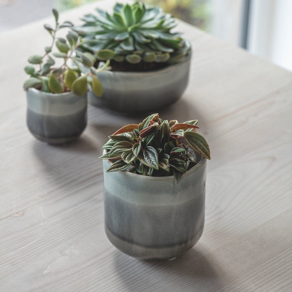 Deep tones combined with a gradual glaze give this grey ombre pot an understated feel making it perfect to style in a range of interior colour schemes. Perfect for potting up with succulents, trailing plants or mini cacti on shelves, windowsills and side tables.