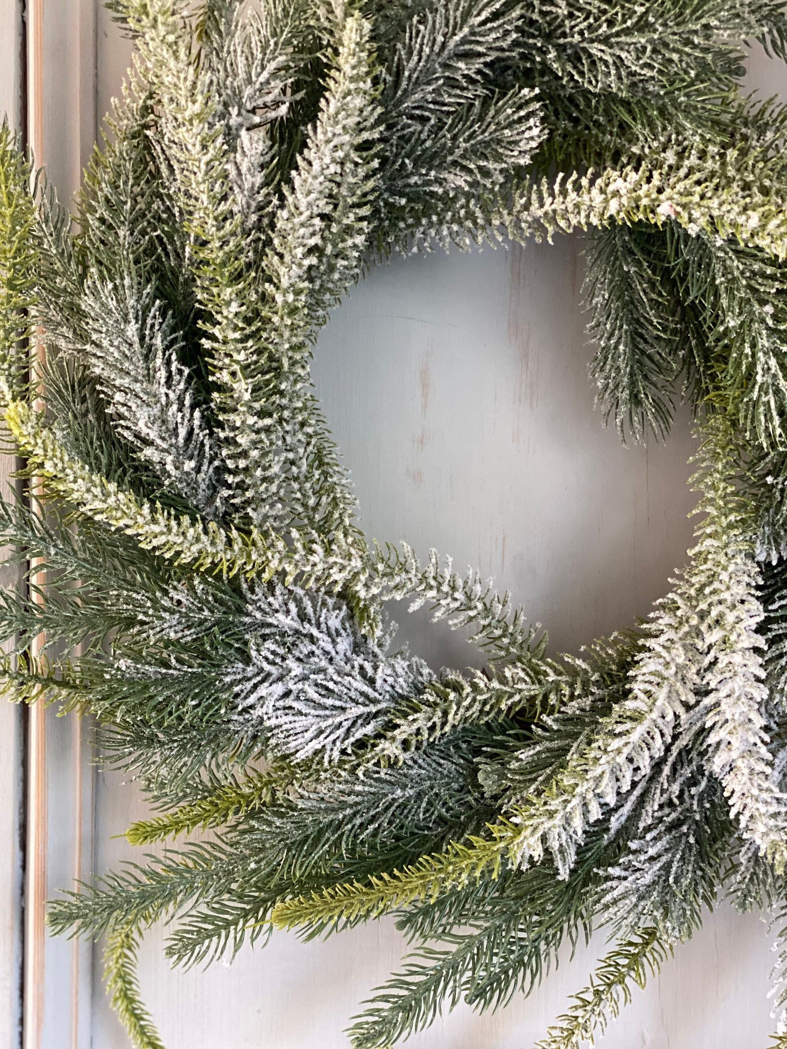 - Material: Faux pine branches, frosted accents, snow-dusted tips